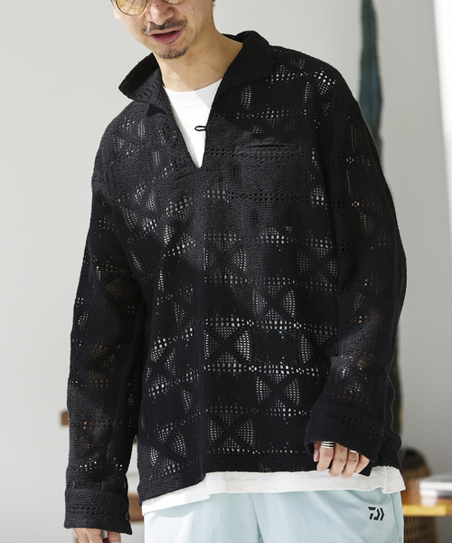 トレンド感の高いレース素材を使った長袖のスキッパーシャツが新登場! 全体的にゆったりとしたサイジングで、近年トレンドでもあるプルオーバータイプで、フロントの釦留めにフェイクレザーのループを使い、デザインのアクセントにしています。 素材は、relumeオリジナルでカラーオーダーしたレース柄も特徴です。 様々なインナーとも相性が良く、無地Tシャツやタンクトップの上に羽織るだけで主役級の存在感があるアイテムです。 シアー感を活かした涼し気なレイヤードコーディネートが楽しめる一着に仕上がっています。 ********************** 透け感:あり 裏地:なし 伸縮性:なし 光沢感:なし 生地の厚さ:普通 ********************** 【スタッフ着用コメント】 《スタッフH》 身長:177cm/体重:64kg/体型:中肉中背/普段サイズ:L/着用サイズ:L サイズ感: 全体的にゆったりなサイズ感です。 素材感:軽くて涼しげな素材感です。 着心地: 軽くて着やすいです。 ********************** 《画像についてのご注意》 ※照明の関係により、実際よりも色味が違って見える場合があります。 またパソコン・スマートフォンなどの環境により、若干製品と画像のカラーが異なる場合もございます。 ※商品の色味は、商品アップ画像をご参照ください。 《商品のお気に入り登録について》 「カートに入れる」または「予約する」右側のハートマークを押していただくと、 再入荷、残り1点、セールなどの通知を受け取ることが出来ます。 本体:手洗い可能