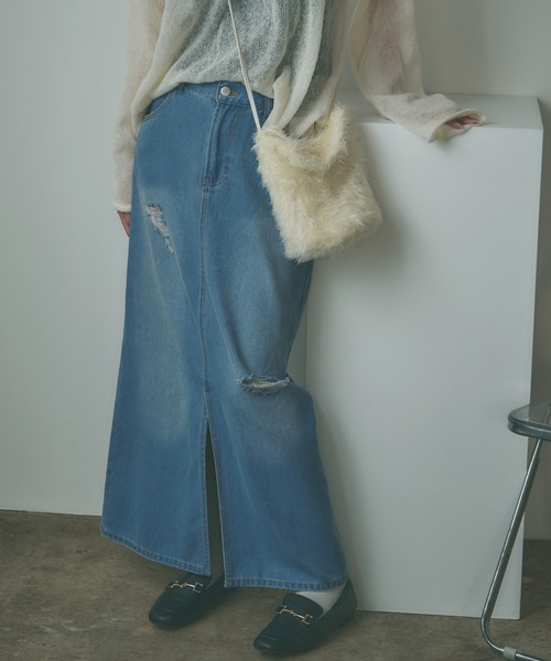 ダメージデニムスカートが新登場!【DESIGN】・ダメージ加工を施したダメージデニムスカート。・ゆったりかつストレートのシルエットが今っぽい◎・前スリットで動きも出やすく、 足首がチラ見えするのが抜け感のポイント!【STYLE】・ワンショルダートップスやロンTなどを インしたナチュラルな着こなしがおすすめ。・ノルディック柄ニットやチルデンニットを 取り入れたスタイリングで今っぽく合わせるのも◎・足元はスニーカーサンダルなど、爽やかに決めても◎・カバンはナップサックやショルダーバッグなど、 定番カジュアル合わせも◎・トレンド感のあるルーズソックスやスパンコールの アイテムを合わせるのもおすすめ。【ROOPTOKYO ZOZOTOWN お買い物ガイド】▼商品をお気に入り登録!完売商品の再入荷やラスト1点の通知が届きます◎ また、あなただけのタイムセールアイテムとしても反映されるので、お得にGETできるチャンスもあるかも!▼"ROOPTOKYO(ループトーキョー)"をお気に入りブランドに登録!新商品や再入荷など、ブランド最新情報をいち早くお知らせ! 是非、ご活用いただきお買い物をお楽しみください!
