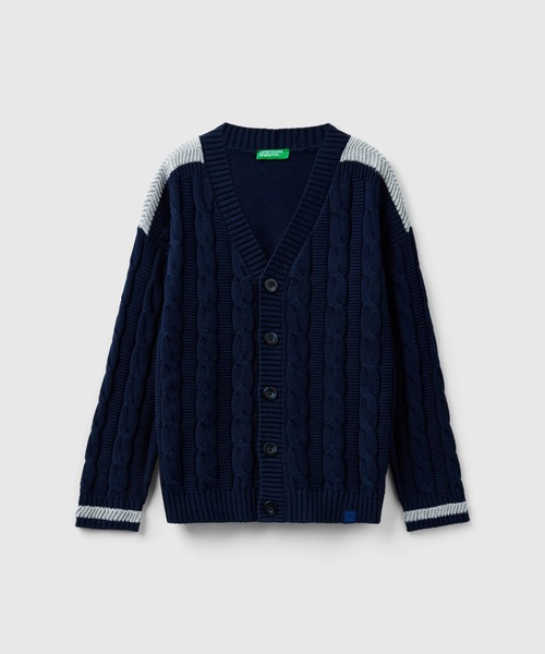 ピュア・トリコット・コットンの長袖カーディガン。全体にエンボス加工のブレードが施されています。Vネック、ボタン付きの前開き。袖口と肩にコントラストカラーのディテール。洗濯機で洗える「イージーケア」。 ●ベネトンキッズ サイズ目安 S:6~7歳、身長122センチ M:7~8歳、身長130センチ L:8~9歳、身長140センチ XL:10~11歳、身長150センチ まずは【お気に入り登録】を。商品の情報がお届けしやすくなりました♪ ご購入後はぜひWEARへのコーディネート投稿♪ お待ちしております。