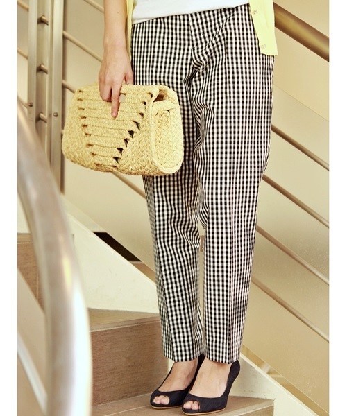 この季節の大定番、ギンガムチェックのサブリナパンツ。必ず一枚は欲しいアイテムですね。Tシャツに合わせたり、ニットやブラウスなど、どんなトップスとも相性抜群。センタープレスの上品な仕立てなので、お仕事用としてもお使いいただけます。トップスをインにしても美しいスタイルが実現するのは、切替のラインとベルトループ付きだからこそ。華奢なベルトに華奢なパンプスなど、女性らしさ際立つ着こなしも叶えてくれます。