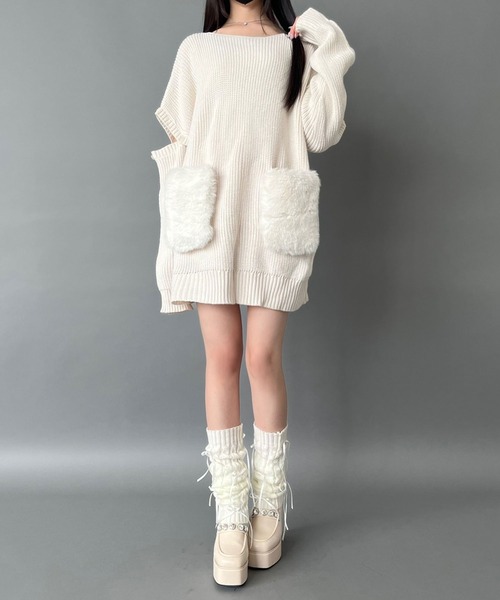 シーズンムード高まる愛されニットワンピ【デザイン】ふっくらとしたローゲージで仕立てた女の子らしいアイテム!ゆるっとしたシルエットが自然と華奢見えを叶え、愛嬌たっぷりなデザインと相まって一目で可愛らしい印象に仕上げました。ファーポケットがポイントのデザインですが、取り外してシンプルにも着られる嬉しい2way仕様♪また、お袖には釦が付いているのでお好みで開き具合を調節できるところもポイント。内側で縫い付けられているので取り外しはできません。同素材で展開されているプリーツミニやサス付きスカートとセットアップコーデを楽しんだり、単品使いもおすすめなアイテムとなっています。【素材】チクチク感のない、厚手のニット素材です。※ご覧のモニター環境や撮影環境により実際の商品と多少色味が異なって見える場合がございます。ご理解の程よろしくお願いいたします。【お買い物をよりお楽しみいただく為に】▼商品のお気に入り登録をおすすめします♡をクリックしてください。完売カラーの再入荷や、ラスト1点の通知、セールの際の通知を受ける事ができます。ブランドのお気に入り登録もご一緒にお願い致します。