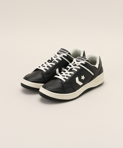 【2024SS】 Plage 1986年に登場したバスケットボールシューズWEAPONをブラッシュアップしたモデル。 クラシックなコートスタイルを現代風にアレンジし、若い世代にも愛されるデザインに。 アッパーにはハリのある質感のレザーを使用し、耐久性と高級感を兼ね備えています。 シンプルながらも存在感のあるブラックと、どんな装いにも合わせやすいホワイトの2カラー展開。 ストリートスタイルはもちろん、多彩なファッションにマッチする万能さが魅力です。 【CONVERSE/コンバース】 1908年に米国マサチューセッツ州にてマーキス・M・コンバースが創業したラバーシューズメーカーを起源とするライフスタイルブランド。 「オールスター」を筆頭にスニーカー史に残るモデルを多数輩出している。 ※先方品番:34201750 ※こちらの商品は一部店舗、オンラインのみの限定販売となります。 ※在庫に関しましては、直接店舗へお問い合わせください。 ※カラーについて 弊社販売カラー名:メーカーカラー名 ブラック(001):BLACK ※サイズについて 弊社販売サイズ:メーカーサイズ 23サイズ:5 24サイズ:6 25サイズ:7 ※シューホールの数は靴のサイズによって異なる場合がございます。 ※取り扱いについては、商品についている品質表示でご確認ください。
