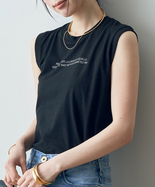 バックプリントが新鮮なロゴTシャツ。 コットン100%の肌触りの良い生地感で、 ラウンドネックに、腕元を華奢に見せる ストンと真っ直ぐなカットを施したタンクトップ。 ワイドパンツやフレアスカートなどボリュームのあるボトムスとのコーディネートがおすすめ。 キャミワンピのインナーとしても活躍する一枚です ロゴはフランス語で施しました。前は『やめない限りゆっくりと進んでもいい』、 後は『通りはいつも賑やかで人々がさまざまな方向に進んでいく』という意味です。 【注意事項】 ※商品画像は、光の当たり具合やパソコンなどの閲覧環境により、 実際の色味と異なって見える場合がございます。あらかじめご了承ください。 ※画像の商品はサンプルです。実際の商品と仕様、加工が若干異なる場合があります。 ※サイズ表記はあくまで目安となります。 ※その他の予約商品、通常商品との同時決済はできません。 ※入荷状況により、お届け予定が前後する場合があります。 ※お客様への発送が店頭販売より遅れる場合もあります。 ※追加生産商品は、一部の店舗、通販で販売中の場合がございます。予めご了承下さい。 ※商品を使用前に、タグ等に記載されている「取り扱い上の注意書き」「洗濯表示」を必ずご確認ください。 ※商品に不良が無い場合、包装紙および箱の彼損がございましても発送いたします。あらかじめご了承ください。