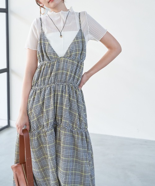 ぽこぽこ素材のふくれジャガードワンピース◆2024春夏◆ 【デザイン・シルエット】 ぽこぽこ素材とオリジナルチェックがかわいいふくれジャガードキャミワンピース。 <POINT> ・深めに開いたフロントが女っぽかわいいシルエット ・ギャザーをたっぷり寄せたティアードデザイン ・バックスタイルに深めに開きデザインとストラップデザインをほどこし、抜け感をプラス 【素材】 ぽこぽこ素材のふくれジャガード素材 【カラー】 オリジナルチェックと無地2色の計3カラー展開 【おすすめのスタイリング】 インナーにタンクやTシャツを合わせるだけで映えるふくれジャガードキャミワンピース。 深めVネックなのでロゴのTシャツなどと合わせるとロゴが見えて可愛いです。短丈の春アウターやジャケットと合わせて春らしいスタイリングをお楽しみください。 ----------------------------- 裏地:なし 光沢感:なし 透け感:なし 伸縮性:なし ウエスト:ゴムなし ポケット:なし ボタン:なし 生地の厚さ:普通 肩紐:調整可 季節:春、夏、秋 ----------------------------- 【モデル着用サイズ】 全色モデル身長:168cm、着用サイズ:F ※画像の商品はサンプルです。 実際の商品と仕様、加工、サイズが若干異なる場合がございます。 ※重量はサンプルMサイズの測量になります。サイズによって多少異なる場合があります。 ※画像によっては実際の色味と異なる場合があります。正しい色味は生地アップ画像をご確認ください。