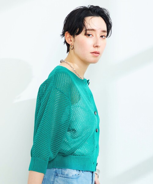 ◇24SS◇ NOLLEY'S ◆Point ・昨年大好評だった5分袖メッシュカーディガンが今年も登場! ・貝ボタンと麻のような風合いの素材を使用し、夏らしく爽やかな印象に ・5分袖のため、暑くなる時期にも活躍 ・メッシュ編地がポイントになるのため、無地のスカートなどと合わせても◎ ・ボタンを留めてプルオーバーのようにして着用するのもおすすめ ※メッシュ柄のため、ネット使用でひっかけなどに注意して洗濯してください。 ●お取扱い上のご注意● 末永くご愛用頂くために、アテンションタグを必ずご確認の上、着用又はお取り扱い下さい。 ※手洗い可 気になる商品は、お気に入り登録がオススメです! クーポン情報、入荷情報が、通知されるようになります。 ※店頭及び屋外での撮影画像は、光の当たり具合で色味が違って見える場合があります。商品の色味は、スタジオ撮影の画像をご参照下さい。 ※商品画像に関しては出来る限り忠実に表示出来るよう努めておりますが、お客様がご利用のモニターの設定及び特性により、実際の商品と比較し色味に若干の誤差が生じる場合があります。 ※画像の商品はサンプルとなりますので実際の商品と仕様、加工、サイズが若干異なる場合がございます。