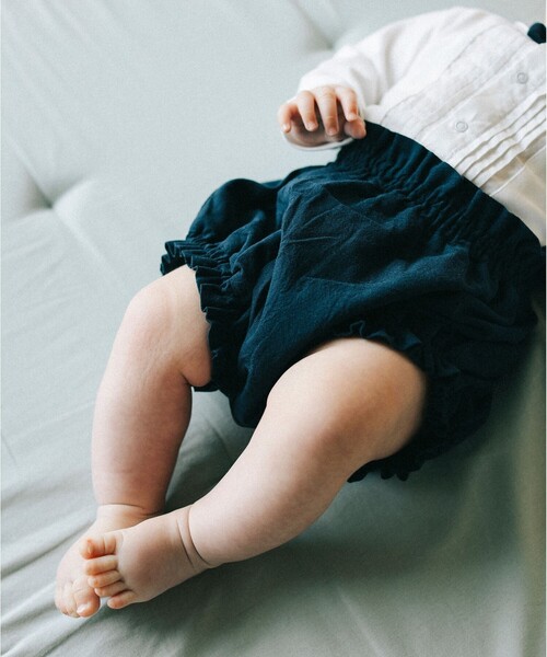 ふんわり丸く可愛いおしり♪まるいフォルムがたまらなくキュートなブルマ。ハイウエストでふんわりとしたフォルで、ハイハイ姿がとっても可愛く!ややシワ感のある清涼感をもった素材感もポイントです。ショートパンツ感覚で穿いても、スカートやワンピースのインナーとしてもおすすめ。男の子も女の子も、可愛さがより引き立つアイテムです。※デリケートな赤ちゃんのお肌を守るために、着用前の水通しをおすすめいたします。■ケア方法水洗い可(ネット使用)(詳細は商品についている品質表示ラベルをご覧ください)生地の厚さ:普通伸縮性:なし裏地:なしBoy Model: H63.5(cm) Size:70Girl Model: H69.5(cm) Size:70【対象年齢:6ヵ月~2歳】※光の当たり具合やパソコンなどの閲覧環境によって実際の色味と異なって見える場合がございます。予めご了承ください。※商品の色味は商品単体で撮影した画像をご参照ください。こども ビームス / コドモ ビームスこどもたちの豊かな感性や想像力を、よりいっそう伸ばすきっかけになるモノやコトを提案する〈こども ビームス〉。日々成長するこどもとのかけがえのない時間が心豊かで、もっと素晴らしいものになるようなモノやコトを提案しています。