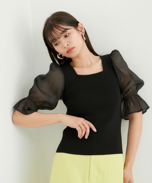 シアーハーフスリーブが女らしいニットプルオーバー!◆2024春夏◆ 【デザイン・シルエット】 顔写りがすっきりと見えるスクエアネックに程よくボディにフィットするフェミニンンなリブニットです。 <POINT> ・透け感のある素材のボリュームキャンディスリーブがポイント。 ・リブ生地のフィット感と袖ボリュームのバランスが良く、着映えトップスとして活躍! 【素材】 袖はツヤ感のあるオーガンジー素材、身頃のニットは着心地の良いサラリとした風合い。 【カラー】 ベーシックで着回ししやすいブラック、生成りとフェミニンな印象のピンクの3色展開。 【おすすめのスタイリング】 デニムパンツやカーゴパンツなどカジュアル要素のボトム合わせは甘さのあるスタイリングにアクティブな印象を与えてくれます。 スカート合わせで可愛い印象も◎ ----------------------------- 裏地:なし 光沢感:あり(オーガンジーの袖まわりのみ) 透け感:あり(オーガンジーの袖まわりのみ) 伸縮性:あり(リブ生地の身頃) ボタン:なし 生地の厚さ:普通 季節:春、初夏、初秋 ----------------------------- 【モデル着用サイズ】 全色モデル身長:168cm、着用サイズ:F ※画像の商品はサンプルです。 実際の商品と仕様、加工、サイズが若干異なる場合がございます。 ※重量はサンプルMサイズの測量になります。サイズによって多少異なる場合があります。 ※画像によっては実際の色味と異なる場合があります。正しい色味は生地アップ画像をご確認ください。