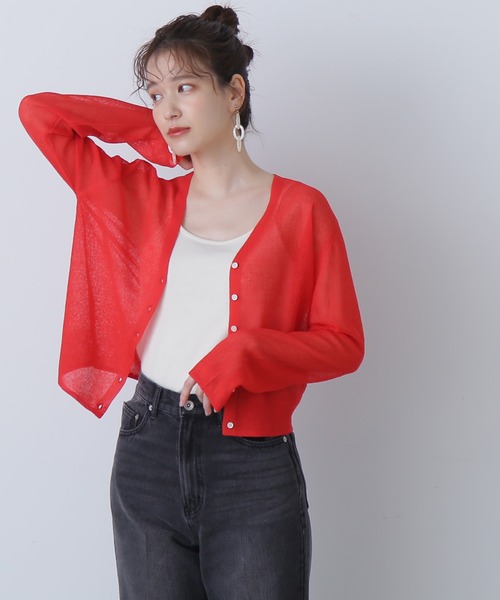 どんなシーンにも決まるVネックシアーカーディガンは、ほんのり肌が透ける今年らしい一枚。やや短めの着丈に対し、ロングスリーブやVネックで抜け感もあります。 袖口にはスリットを入れ、手先に軽やさをプラスできます。ノースリーブアイテムの羽織りにおすすめのアイテム。 ●取り扱いについては、商品についている品質表示でご確認ください。 ●撮影はサンプル商品で行っている為、仕様とサイズが異なる場合がございます。 ●スタジオ及び屋外で撮影した着用画像は、光の当たり具合やご覧のモニターによって色味が違って見える場合があります。予めご了承ください。 ●生産時期により色・素材・サイズ感など多少異なる場合がございます。予めご了承ください。 ≪お買い物をよりお楽しみいただくために≫ ・「商品のお気に入り登録」 再入荷通知や、ラストの通知、セール通知も受け取ることができます。 ・「ブランドのお気に入り登録」 新商品や再入荷など、お得な情報を受け取ることができます。