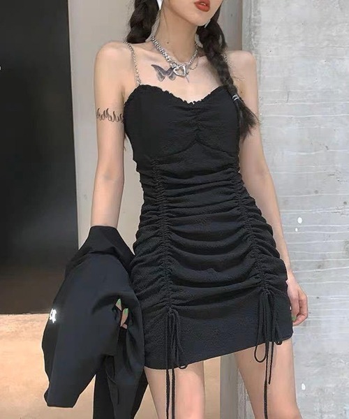 前のギャザーは丈の長さを調節して結べるのでお好きな長さで着ることが出来ます♪ 中にTシャツを合わせたり肩ひもになっているチェーンは取り外し可能なのでベアワンピとしても着れます◎ ●サンプル品を使用している事もあり、サイズ感など多少異なる場合もございます。 ●パソコンのモニター、撮影の光量などにより画像と実物の色味が異なって見える場合がございます。 ●入荷時期・追加生産により画像・詳細と多少異なる場合がございます。 ■商品によって生地の他繊維の混紡、縫製の多少のほつれなどがある場合がございます。