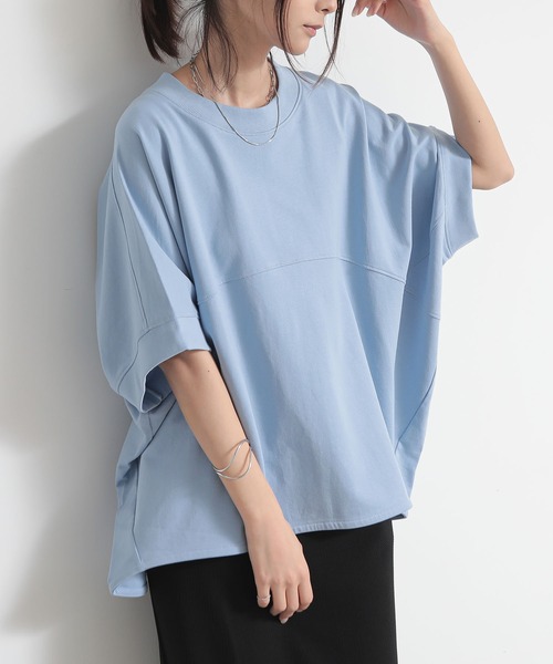 ゆったりサイズ×絶妙ショート丈がトレンド感増し! ロングシーズン着回せるミニ裏毛素材◎ 切替とゆったりしたドルマンシルエットがポイント。 体型カバーできるデザイン。 ゆったりサイズで肘が隠れる袖丈。 カジュアルな中にも女性らしさがあるショート丈。 こなれ感のでる着まわし力で色違いで揃えたくなるアイテム。 ミニ裏毛素材。 暖かい季節にも着やすい柔らかいサラッとした肌触り。 ロングシーズン着まわせる、扱いやすい生地感。 生地や服の特徴 伸縮性 : 少し伸びる 透け感 : ホワイトはやや透け感がございます。 裏地 : なし ポケット : なし 肌触り : 程良い厚みで柔らかい肌触り。 Mスタッフが着用してみました。 ◆身長:160cm 着用サイズ:FREE 普段の着用サイズ:M◆ 着丈(最短位置) : 裾位置はヒップ下くらい 身幅 : 大きめ アームホール : 大きめ Lスタッフが着用してみました。 ◆身長:163cm 着用サイズ:FREE 普段の着用サイズ:L◆ 着丈(最短位置) : 裾位置はヒップ真ん中くらい 身幅 : 大きめ アームホール : 大きめ 《便利な機能のご紹介》 ◇商品のお気に入り登録 完売カラーの再入荷通知、ラスト1点の通知、セールの通知を受け取ることができます。 ◇当ショップのお気に入り登録 新商品&再入荷等、イベント等のお得な情報を受け取ることができます。