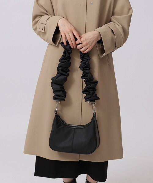 Design Pointすっきりとしたナイロン素材を曲線フォルムに落とし込んだ、大人にぴったりなハンドバッグ。ハンドルのギャザーワークがポイントで、肩掛けした時に存在感が光るアイテムです。アクセサリー感覚でスタイルにアクセントを付けてくれます。※ポケット数:内側×2店舗へのお問い合わせ商品番号:523-08008●製品寸法:00(FREE):高さ13cm 幅(上部)21cm 幅(下部)24cm マチ6cm 付属ショルダー全長68.5cm備考:重量:約330g(サンプル重量)
