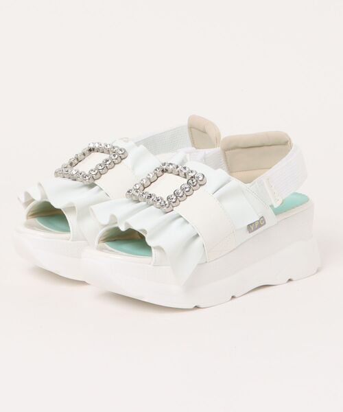 可愛らしいビジューとフリルのついたアッパーが特徴のサンダル。程よい6cmの厚底ヒールは使いやすく、インソールのクッションもあり歩きやすさも◎サッと脱ぎ履き出来るマジックタイプなのもうれしいポイント。【YOSUKE】ヨースケ「私らしく、他人と同じではつまらない」をコンセプトに、個性的な厚底シューズを展開するブランド。トレンドが常に考えられており、ロック系、ゴシックロリータ系、地雷系ファッション等で20代女性を中心に人気を博している。
