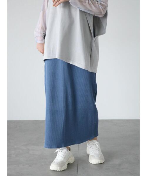 細畝のテレコ地でシルエットをすっきりと見せてくれるタイトスカート。ウエスト部分はゴム+ドロスト仕様で穿き心地もノンストレス。Iラインシルエットで、着こなしもスマートな印象にまとめてくれます。後ろスリットが足元に軽やかなヌケ感をプラスしてくれるのもポイントです。※商品画像は、撮影環境やお客様のご利用のPC・スマートフォンのモニター環境などにより実物と色味に差異がある場合がございます。【その他採寸】F ウエスト:[ゴム仕様]64cm