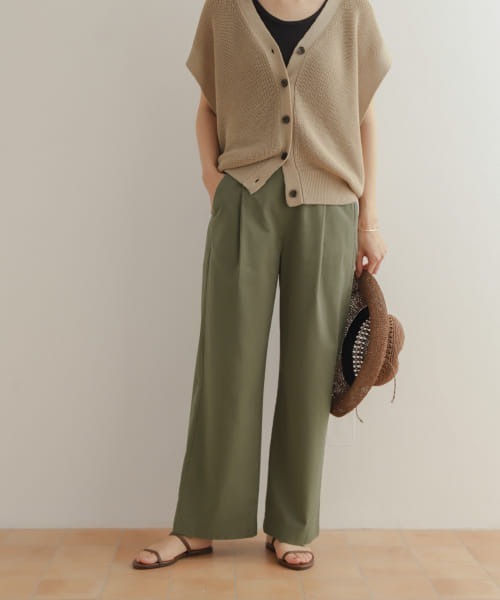人気のイージーパンツのデザインをベースに、今シーズンはサイズ感をリニューアルし、洗濯可能な素材にアップデート。レーヨンコットンの素材は軽くて柔らかな着心地ながらも、程よくハリがあるため大人っぽさを演出してくれます。ウエストは後ろのみをゴムで仕立て、穿きやすさと見た目の美しさを兼ね備えました。Mサイズでも腰周りのシルエットをスッキリと見せてくれるタック入りで、細身の方や小柄な方にも穿いていただきやすいSサイズもご用意。カジュアルダウンしがちなSSのコーディネートにプラスするだけで女性らしい雰囲気が生まれるため、Tシャツやブラウスにも簡単にマッチし、オンオフ問わずに使用いただけます。【2024 Spring/Summer】【24SS】※商品画像は、光の当たり具合やパソコンなどの閲覧環境により、実際の色味と異なって見える場合がございます。予めご了承ください。※商品の色味の目安は、商品単体の画像をご参照ください。▼お気に入り登録のおすすめ▼お気に入り登録商品は、マイページにて現在の価格情報や在庫状況の確認が可能です。お買い物リストの管理に是非ご利用下さい。素材感透け感 : なし伸縮性 : なし裏地 : なし光沢 : なしポケット : あり