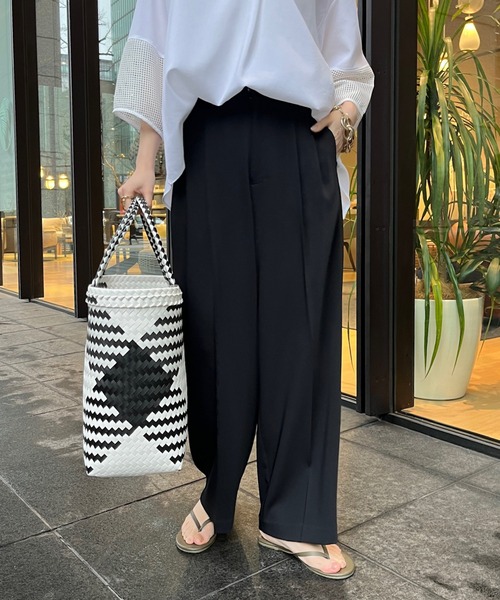 ■2024 SPRING & SUMMER ITEM■ 大人カジュアルに着られる落ち感シルエット 脚がきれいに見える絶妙なシルエットに、さらにセンタープレスを施したスタイルアップ効果抜群のパンツ。 とってもきれいに見えるのに、バックゴム仕様+ストレッチの利いた素材感でイージーな履き心地に。 きちんと感と抜け感を絶妙なバランスに仕上がっています。 DOUDOUでもたくさん展開している、ざっくりとしたサマーニットなどと相性よくマッチしてくれますよ。 - POINT - ・デイリーにぴったり! ・身体のラインを拾わないストレートシルエット ・ウエストも楽々な仕様 -------------------------------- 洗濯:水洗い不可能 透け感: なし 裏地: なし 伸縮性: あり 光沢感: なし -------------------------------- 【 ♡ をクリックでお得な情報をお知らせいたします 】 〈 商品のお気に入り登録 〉 お気に入りアイテムのお値下げ・再入荷・在庫ラスト1点など通知を受けることができます。 〈 ブランドのお気に入り登録 〉 DOUDOUの新商品や再入荷、セール、クーポン配布などお得な情報を受けることができます。 -------------------------------------- ※ 生産の都合上、お届け時期が前後する場合がございます。 ※ 掲載画像の商品の色味は、 撮影場所や光の当たり具合などにより色味が異なって見える場合がございます。 また、お客様のお使いのPC・スマートフォン等のモニター環境などにより色味が異なって見える場合がございます。予めご了承の上ご注文ください。 ※ 着用、お取り扱いの際は、商品についている品質表示とアテンションタグを必ずご確認下さい。