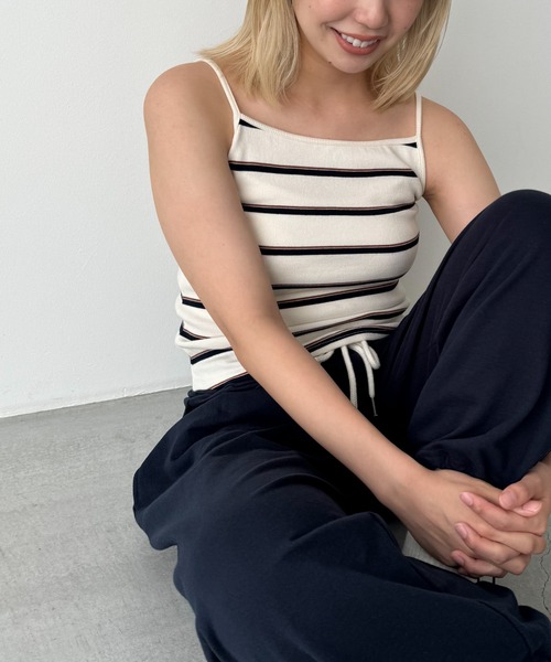 デザイン コーディネートの差し色や主役になるボーダーキャミソール。 ネックラインが少し高めの位置になっているので安心感のある着心地。カジュアルになりすぎず大人っぽい印象を与えてくれる一枚です。 素材 伸縮性のあるリブ生地でストレスフリーな着心地が魅力。 コーディネート シアーシャツやジャケット、カーディガンなど様々なアイテムとのレイヤードスタイルがおすすめ。 カジュアルなスタイリングでも女性らしく着こなして頂けます。 El mar(エルマール) El mar はスペイン語で『海』 海に向かうときはだれでもワクワクする。 洋服を選ぶとき、袖を通すとき、 同じように心が踊るアイテムを提案したい。 そんな『ワクワク』な気持ちを込めて El mar はデビューしました。 ------------------------------------- 生地の厚さ:厚い〇〇●〇〇薄い 伸縮性:あり 透け感:なし 裏地:なし 光沢:なし 水洗い:可 ------------------------------------- 取扱い:手洗い 濃色は色落ちする可能性がありますので、他の物とのお洗濯はお避けください。 蛍光増白剤の入っていない洗剤をご使用ください。 長時間の水への浸漬はお避けください。 洗濯後は速やかに形を整えて陰干しをしてください。 水洗いの後の乾燥機のご使用はお避けください。 この商品は素材の特性上、ピリング(毛玉)が出る場合がございます。 クリーニングネットを使用してください。 アイロン掛けの際は、あて布をご使用ください。 ※取り扱い及びお手入れ方法については、商品について取扱表示、洗濯表示にてご確認下さい。 ※照明の関係により、実際よりも色味が違って見える場合があります。またパソコン・スマートフォンなどの環境により、若干製品と画像のカラーが異なる場合もございます。 ※商品の色味は、商品アップ画像をご参照ください。
