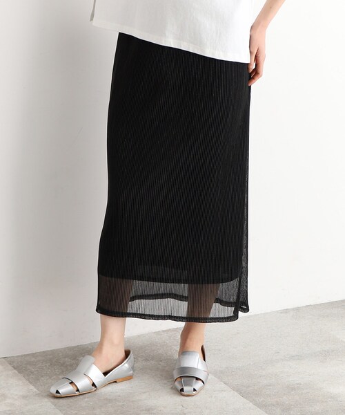 ■ポイント/詳細シャイニーな素材のプリーツナロースカート。ゆったり目のスウェットやシャツとの相性のいいシンプルなデザインです。柔らかくて快適な着心地。裏地付きウエストはゴムで楽にはいていただけます。※ポケットなし■素材/機能性シアーとラメの入った素材に細かいプリーツをかけた素材で伸縮性があります。※やや短めの裏地あり※こちらの商品はやや透け感があるため、インナーの着用をおすすめします。■おすすめPOINTゆったり目のトップスにナローなスタイルをあわせてカジュアルやモードなスタイルがおすすめです。※照明の関係により、実際よりも色味が違って見える場合があります。また、パソコン・スマートフォンなどの環境により、若干製品と画像のカラーが異なる場合もございます。モデル情報:身長166cm B72 W62 H86 着用サイズ:12(M)店舗へのお問い合わせ商品番号:040-78004●製品寸法:12(M):W60~70cm H82cm 総丈84cm13(L):W64~74cm H86cm 総丈86cm備考: