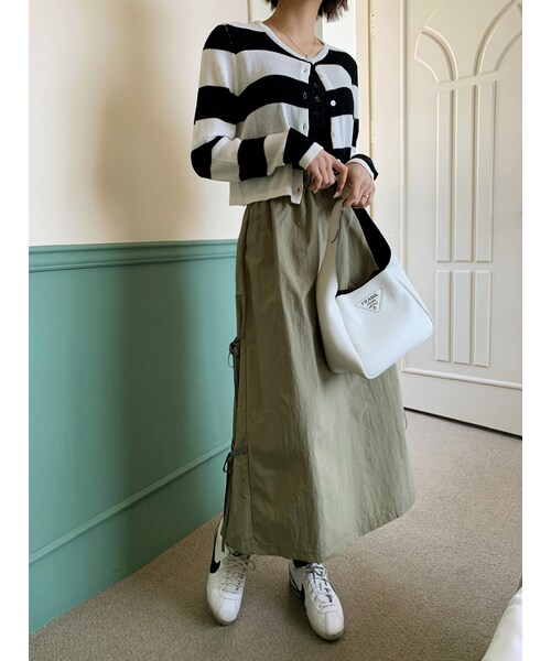 Miamasvin(ミアマスビン)の「ラブリー ア リボン スカート(その他・レディース・カーキ-モデル着/クリーム/ブラック・FREE(XS-L))」の1枚目の写真