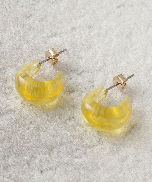 涼やかなクリアカラーピアス 【デザイン】 小さ目のクリアカラーフープピアス。 クリア、イエロー、パープルの3色展開で春夏コーディネートにぴったりのアイテムです。 ※照明の関係により、実際よりも色味が違って見える場合があります。また、パソコン・スマートフォンなどの環境により、若干製品と画像のカラーが異なる場合もございます。 店舗へのお問い合わせ商品番号:C71-38525 ●製品寸法: 00:モチーフH1.5cm モチーフW0.8cm モチーフD1.8cm 備考: