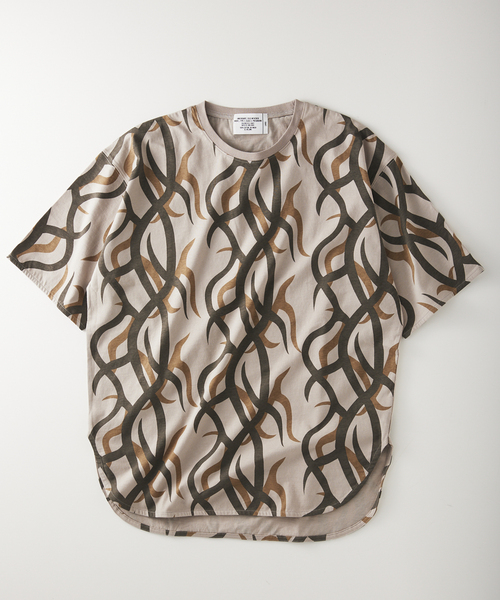引き続き大ヒットを続けているrelume定番のレイヤード用ラウンド半袖Tシャツから柄バージョンが新登場! インナーにも個性を出したいというニーズにお応えして生まれたラウンドシルエットのTEEシャツ。 フェードさせた様に薄くプリントを打ち、リアルツリー・トライバルカモ・ペイズリーの3柄展開です。 しっかりとした落ち感のあるドロップショルダーに、程よくゆったりとした身幅に、大胆なスリットデザインで、着るだけでトレンドシルエットのスタイリングが完成。 一枚着としてもレイヤードコーディネートのインナーとしても活躍し、シーズンを通して重宝するアイテムに仕上がりました。 ********************** 透け感:なし 裏地:なし 伸縮性:なし 光沢感:なし 生地の厚さ:普通 ********************** 【スタッフ着用コメント】 《スタッフH》 身長:173cm/体重:62kg/体型:中肉中背/普段サイズ:M/着用サイズ:L サイズ感: レイヤードしやすいようやや長めのサイズ感です。 素材感:さらっとした素材感です。 着心地:軽い着心地なので快適にレイヤードできます。 ********************** 《画像についてのご注意》 ※照明の関係により、実際よりも色味が違って見える場合があります。 またパソコン・スマートフォンなどの環境により、若干製品と画像のカラーが異なる場合もございます。 ※商品の色味は、商品アップ画像をご参照ください。 《商品のお気に入り登録について》 「カートに入れる」または「予約する」右側のハートマークを押していただくと、 再入荷、残り1点、セールなどの通知を受け取ることが出来ます。 本体:洗濯機洗い(弱)