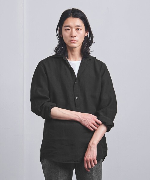 清涼感と抜け感のあるプルオーバーシャツ ■デザイン ほどよくゆとりのあるスタンダーフィットのイタリアンカラープルオーバーシャツ。 第1ボタンから首元に向かって、ややV字に開いたデザインです。 立体的に立ち上がったワンピースカラーがリラックス感のある表情を演出します。 ■素材 「LIBECO」社製の麻素材を使用。 薄すぎない適度な生地感としなやかなハリ、美しい発色が特徴です。 ■コーディネート 長すぎない丈感ですっきりと着用できる1着。 1枚での着用はもちろん、首元からさりげなく見えるインナー使いも楽しめるアイテムです。 ============================ 裏地:なし 透け感:ややあり 伸縮:なし 光沢感:ややあり ============================ 【注意事項】 ※商品を使用前に、タグ等に記載されている「取り扱い上の注意書き」、「洗濯表示」を必ずご確認ください。 ※商品画像は、光の当たり具合やパソコンなどの閲覧環境により、実際の色味と異なって見える場合がございます。あらかじめご了承ください。 ※商品の色味の目安は、商品単体の画像をご参照ください。 店舗へお問い合わせの際は、全国のUNITED ARROWS各店舗まで下記の品名/品番をお申し付けください。 品名:UA LBC/LI P/O 品番:11111993818
