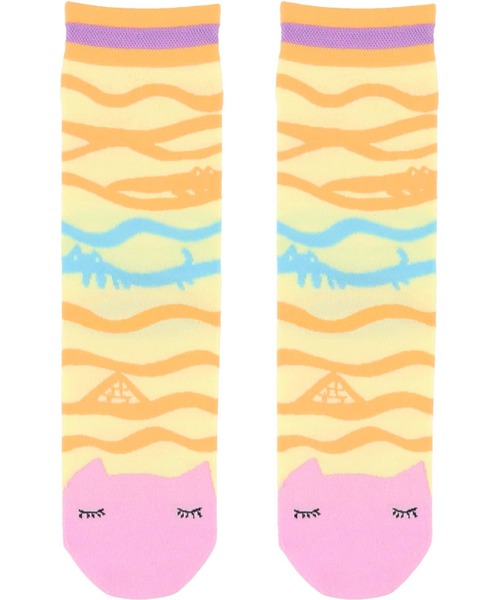 【ソックス】毎日をもっと楽しく過ごせるように。嬉しいとき。不安なとき。ひとりのとき。家族といるとき。どんなときでもHAPPYなものを身につけて、笑顔になってもらいたい。デザイナー“津森千里”氏のそんな気持ちを表現したブランド。2024年春夏テーマ:<エジプトへの旅>津森千里氏がエジプトへ旅行したときに受けた印象そのままに描いた、オリジナリティあふれる個性的な図柄をお楽しみください。・ナイル川の流れをモチーフにした手描き風のボーダー柄をジャカードで表現したソックス・つま先部分のネコの顔がデザインポイント【サイズ詳細】M:22.0cm ~24.0cm※洗濯機可※お洗濯は、必ず「取扱い表示」にしたがってください。
