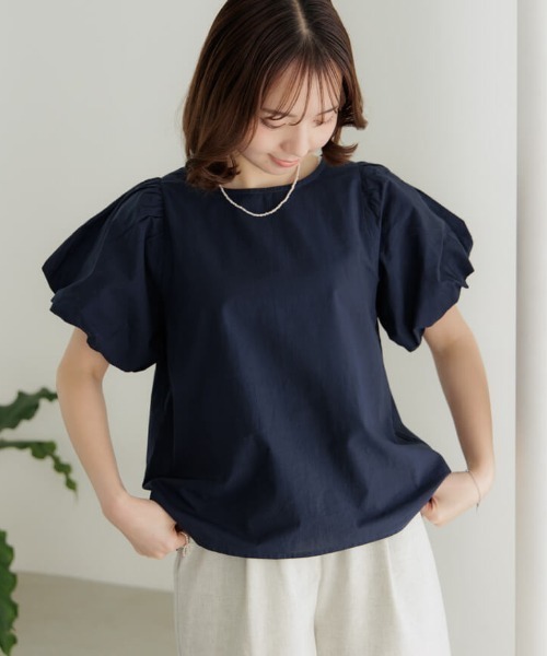 ■デザインたっぷりとギャザーを寄せた、ボリューミーな袖がキュートなブラウス♪身頃はシンプルなデザインなので一枚ではもちろん、キャミワンピースなどとのレイヤードアイテムとしても◎!薄手のコットン素材で暑い日もさらっと着ていただけます。生地のほどよい透け感や肩幅など細部にこだわり、Tシャツほどカジュアルではなくブラウスほど甘すぎないデザインに仕上げました。肌なじみの良い合わせやすいカラー展開も魅力的♡デイリー使いにぴったりなアイテム♪きれいめなアイテムと合わせてオフィスシーンにもおすすめです。■flower/フラワー「love&joy」をコンセプトに、商品に愛を込め、お客様に楽しんでいただけるような、ナチュラルでガーリーなアイテムを提案していきます。【お買い物を上手にお楽しみいただくためのPOINT2つ】◎ 購入ボタン横の ♡ (ハートマーク)をクリック! 完売カラーの再入荷通知、残り1点の通知、セールの通知を受け取れます。 (クリックまたはタップで商品のお気に入り登録♪)◎ ショップのトップページにある ♡ (ハートマーク)「お気に入りショップに追加」をクリック! 新商品や再入荷等、いち早くブランドのお得な情報を受け取れます。 (ブランドのお気に入り登録♪)