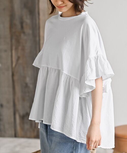 ☆2025/SS 再入荷☆ふわっと軽やかなコットンプルオーバー身頃は着心地の良いカットソー、袖と胸から下は布帛地で切り替えた異素材トップス。どちらもコットン100%なので肌触りもよくストレスフリーにご着用いただけます。たっぷりワイドなサイジングが抜け感を作り女性らしい装いに。ふわっと広がるシルエットに袖のフリルが甘さを加えます。脇部分は中が見えにくいよう当て布付きで安心。シーズンライクで大人ガーリーなスタイリングをお楽しみください♪※再入荷の場合、生産時期が異なるため色・素材・サイズ・デザイン等多少異なる場合がございますので予めご了承ください裏地なし伸縮性なし薄手インド生産(インド製品特有の色柄、風合いのため多少の色むら、織りキズ、別糸混入等は商品の特徴の一つですので、予めご了承ください)洗濯:洗濯機使用可(ネット使用)▼お気に入り登録でお得がいっぱい▼~商品をお気に入り登録~再入荷・ラスト1点などの通知を受け取ることができます!~ブランドをお気に入り登録~《rps》の新商品・再入荷情報をいち早くお届け!