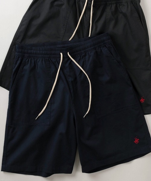 【BEVERLY HILLS POLO CLUB/ビバリーヒルズポロクラブ】ワンポイントロゴ刺繍 ベイカーデザイン 無地ピーチツイルハーフパンツ/ バギーショーツ
