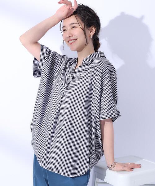 大人気のフレンチリネンブレンド 襟付きドルマンシャツ。 【デザイン】 ゆったりとしたドルマンスリーブで体型カバーも叶うデイリーに使いやすい一枚。 襟付きのスキッパーデザインで首元がすっきり見えて、胸元のスリットが横からの姿もキレイに見せてくれます。 前かがみになっても胸元が気になりにくい程よい開きの深さにこだわりました。 5分袖で二の腕をしっかりカバーしてくれます。 袖口の幅を広くとることで動きやすく、腕周りの華奢見え効果も。 ワンサイズでゆったり着られて風通しもよく、涼やかな着心地です。 前後差があり、ヒップの隠れる丈感とシルエットにこだわってお作りしたので、1枚でお洒落見えします。 【スタイリング】 様々なボトムスとも相性が良く、1枚でサマになるデザイン。 前身頃の裾部分はラウンドカットになっているので、前だけをインにして後ろ身頃を出したスタイルがこなれ感が出ておすすめです。 ワイドパンツ合わせやスキニーパンツにアウトでゆるっと着ていただいても。 インスタイルでボリュームスカートを合わせたりと、コーディネートの幅が広がります。 【素材】 レーヨンのなめらかな肌触りとリネンの清涼感に加え、暑い時期に肌に直接触れても心地よい着用感にこだわりました。 ハリ感と落ち感があり着心地の良い素材です。 ※照明の関係により、実際よりも色味が違って見える場合があります。また、パソコン・スマートフォンなどの環境により、若干製品と画像のカラーが異なる場合もございます。 モデル情報:身長166cm B80 W59 H85 着用サイズ:00(FREE) 店舗へのお問い合わせ商品番号:C62-88009 ●製品寸法: 00(FREE):着丈68cm B140cm 裄丈46cm 備考: