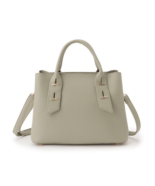 【デザイン】やわらかいシボ合皮をあしらい、トレンド感のあるメタルパーツを前面にほどこしています。【機能性】取り外し可能なショルダー紐が付いているので2WAYでご使用いただけます。メイン口はファスナー仕様で中身が見えにく、安心です。メイン口の両側に仕切りがあり、荷物の仕分けがしやすいバッグです。底鋲付きなので底面に汚れが付きにくいのが嬉しいポイント★ポケット数:内側×2※照明の関係により、実際よりも色味が違って見える場合があります。また、パソコン・スマートフォンなどの環境により、若干製品と画像のカラーが異なる場合もございます。店舗へのお問い合わせ商品番号:P93-78061●製品寸法:00(フリーサイズ):高さ21.5cm 幅(上部)26cm 幅(下部)29cm マチ12cm 持ち手上がり9cm 付属ショルダー対応サイズ67~125cm備考:重量:約480g