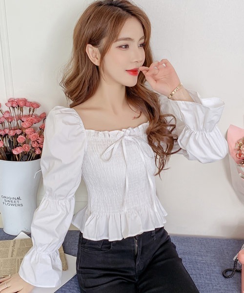 フロントのリボンとスクエアネックが大人可愛いデザインのブラウスです♡ 身体にフィットするので華奢に見せてくれます♪ 中にシアー素材などのインナーとレイヤードするのもオススメです◎ ●サンプル品を使用している事もあり、サイズ感など多少異なる場合もございます。 ●パソコンのモニター、撮影の光量などにより画像と実物の色味が異なって見える場合がございます。 ●入荷時期・追加生産により画像・詳細と多少異なる場合がございます。 ■商品によって生地の他繊維の混紡、縫製の多少のほつれなどがある場合がございます。