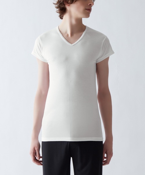 【アセドロン】鹿の子素材シリーズ ベタつき瞬時にどこへやら「アセドロン」! 珪藻土からヒントを得たグンゼオリジナルの速乾テクノロジー。 サッと汗を吸ってパッとすぐ乾く、驚きの新素材が誕生! 汗の不快がサッ・シュッ・パッと瞬間逃亡。 サッと吸湿【究極のサラッと肌ざわり】 吸湿性が高くなめらかなレーヨンと、ドライ感の強いポリエステルを混紡。 サラサラ、スベスベ触感が持続します。 シュッと放湿【”芯”から吸放湿、だから速い】 糸の芯部に、高い吸放湿性を発揮する物質を結合。 湿気を吸放湿し、快適を保ちます。 パッと速乾【無数のスキマが汗を拡散】 糸の鞘部に隙間を作り、水の通り道を確保。汗を素早く効果的に拡散します。 鹿の子素材の汗取り付きVネックTシャツ。暑い日の汗による不快感を軽減します。 -----デザイン&素材ポイント----- ・汗取り付き(短袖) ・吸汗速乾 ・抗菌防臭加工 ・吸放湿 ・鹿の子素材 ・乾燥機:不可 ・汗対策 【アセドロン】 珪藻土の自然パワーに着想し開発した、グンゼ史上最高クラスの吸汗速乾テクノロジー。 ≪ お買い物をお楽しみいただくために ≫ ☆商品のお気に入り登録 購入ボタン右側の♡マークをクリック! 完売カラーの再入荷通知、ラスト1点の通知、セールの通知も受け取ることができます♪ ☆ブランドのお気に入り登録 ショップのトップページにある「お気に入りショップに追加」をクリック! 新商品の入荷や再入荷等、いち早くブランドのお得な情報を受け取ることができます♪
