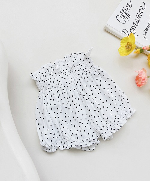 プリント柄がかわいいカボチャパンツです! ウエストがゴムなので履きやすく、サラッっとした素材で春夏にピッタリ! パンツ裾にもゴムが入っているので動きやすいです。 シンプルなトップスでも柄のボトムスを合わせると春夏らしいコーディネートが決まるので1枚あると春夏のお出かけに困りません!