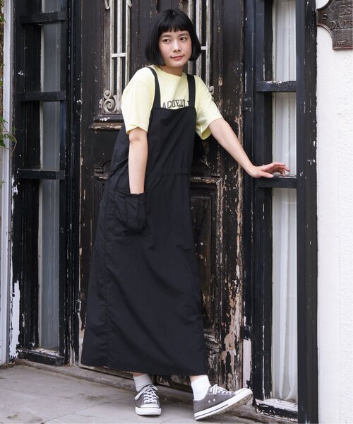 トレンドのナイロン素材のジャンスカ。 インナーを変えながら幅広いテイストにアレンジできます。 【素材】 ワーク系ナイロン素材。 【デザイン】 ほんのりAラインでスピンドル使いのデザインです。 【ポイント】 ウエスト部分のスピンドルを調整して、お好みのシルエットにできます。 幅広いシーズンに使える素材感です。 [洗濯方法] 洗濯の際はネットを使用してください
