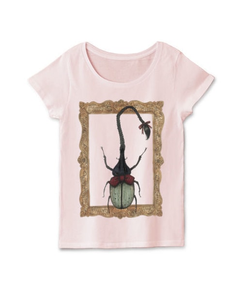 【オサレカブトムシ】シリーズ レディースTシャツ カラーは、A.シャーベットピンク、B.シャーベットイエロー、C.シャーベットグリーン、D.シャーベットブルー、E.メランジグレー、F.ブラックの6色です。(着用画像のカラーは廃盤色です。) サイズは、S、M、Lがございます。 ※こちらの商品は完全受注生産です。ご注文頂いてからの生産になりますのでお届け先によって異なりますが商品の到着まで1週間〜3週間かかる場合がございます。生産を委託しているTシャツトリニティからの発送になります。 ※プリントに使用しているインクの匂いがございますが、一度のお洗濯で消えます。