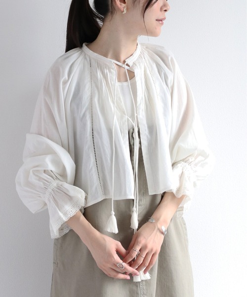 春から夏に向けて活躍!羽織るだけでトレンド感のあるレースボレロブラウス。 ■Point さらりと軽く柔らかい風合いと、 ナチュラルで素朴な素材感が魅力的なソマニのインド綿を使用。 普段のコーデに重ねるだけでおしゃれなレイヤードコーデが完成します♩ ■Material 柔らかいインド綿を使用し、軽い着心地です。 手作業による温かみのある独特の風合いが楽しめます。 ■Coordinate 定番のデニム合わせでカジュアルに着こなすのはもちろん、 ワンピースの上から重ねたり、スカートと合わせたコーデもおすすめです。 モノトーンカラーは、カラー物と合わせた着こなしでトレンドライクな印象に。 ※照明や天候により実際の色味と異なって見える場合がございます。ご了承くださいませ。