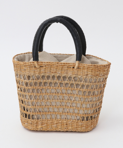 合成皮革で覆ったハンドルがポイントのシーグラスのバッグです。 ざっくりとした編み目で、内生地のリネンコットンが透けて見える軽やかなデザインになっています。 <素材> SEAGRASS(シーグラス)は日本のイグサに似た天然水草です。 ひとつひとつ職人たちによるハンドメイドで生産しています。 軽量でありながら強度があるため、日常的に使われるバッグや雑貨などに適しています。 独特な風合いがあり、ナチュラルな雰囲気を出すことができます。 長く使っていくうちに味が出てくるため、経年変化の魅力があります。