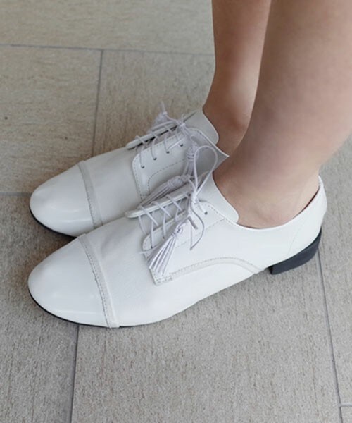 靴紐の先端がタッセルになっているのがポイントのオックスフォードシューズ。 約2cmのヒール、やわらかいフェイクレザー素材で、歩きやすさも抜群です。 ※WEARに記載してある金額と、DHOLIC通販サイトに記載してある金額にシステム都合上誤差がございますが、正しい金額はDHOLIC通販サイトの方です。