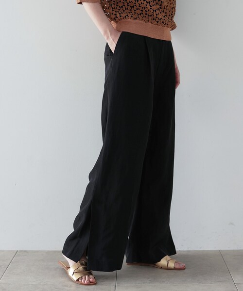 Design Pointリラックスしたラクチンな着心地、風通しの良さがポイントのパンツ。足元には大胆にベンツスリットを入れ、抜け感をプラスしています。Styling Pointシャツやニットなどを合わせてキレイめに、Tシャツやスウェットを合わせてカジュアルに。オン~オフまで幅広いスタイリングが楽しめます。同素材のジャケット(523-48012)とセットアップで着るのも◎。Fabric Pointアセテートと麻のドライなタッチにキュプラの光沢感をプラス。涼し気なシャンブレー素材です。※照明の関係により、実際よりも色味が違って見える場合があります。また、パソコン・スマートフォンなどの環境により、若干製品と画像のカラーが異なる場合もございます。店舗へのお問い合わせ商品番号:523-68012●製品寸法:36(S):総丈102cm W67cm H97cm 股下68cm 前股上33cm 渡り幅32cm 裾幅28cm38(M):総丈104cm W70cm H100cm 股下69cm 前股上33cm 渡り幅33cm 裾幅29cm40(L):総丈106cm W73cm H103cm 股下70cm 前股上34cm 渡り幅34cm 裾幅30cm備考: