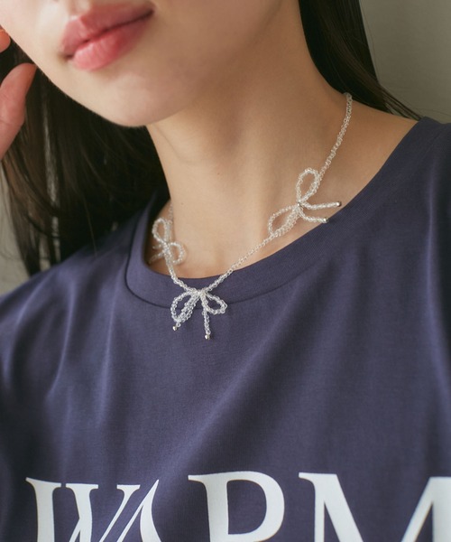 小粒のキラッとビーズリボンが可愛いショートネックレス!◆2024春夏◆ 【デザイン・シルエット】 リボンが首に沿うような長さで、見た目以上に使いやすい仕上がりです。 いつものコーデにプラスするだけで今っぽコーデに◎ 首元が開くトップスにはもちろん、カジュアルなロンTなどにもラフに合わせて頂くのもおすすめです。 【カラー】 ベーシックに使えるブラックと、涼し気な印象でお使いいただけるシルバーとクリアの3色展開でのご用意です。 ※シルバー(93)はクリア。、その他(99)はシルバーとなります。画像をご確認ください。 ※画像の商品はサンプルです。 実際の商品と仕様、加工、サイズが若干異なる場合がございます。