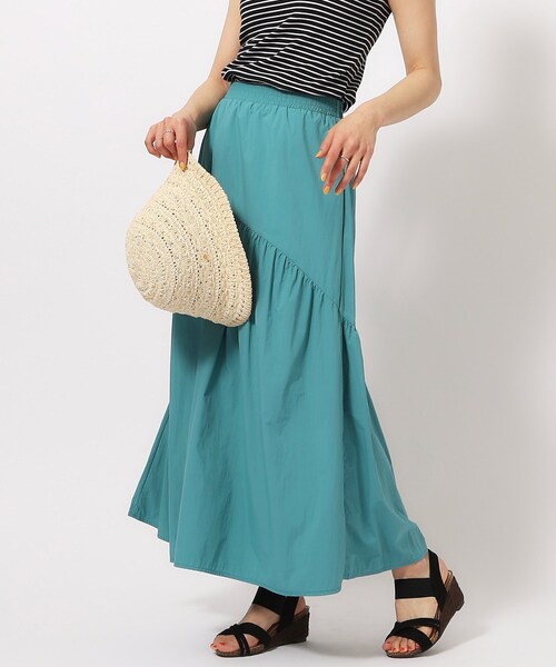 大人のボリュームシルエットを叶えたティアードスカート 【デザイン】 大胆にボリュームを持たせたフレアシルエットが目を惹くティアードスカート。 独特なカーブを描く切り替えラインで、表情にさり気ないアクセントをプラスしています。 ウエストはぐるり1周ゴムを通しているので快適な穿き心地。 コーディネートが一気に華やぎ、歩くたびに揺れる裾まわりがエレガントな印象です。 ※ポケットなし 【スタイリング】 キレイめにもカジュアルにも着こなせるティアードスカートです。 サマーニット合わせで大人っぽく上品なオフィススタイルに! Tシャツ合わせでフェミニンで可愛いカジュアルスタイルに! 幅広く着こなしていただけます♪ 春から秋へのロングシーズン着ていただけるアイテムです。 【素材】 さらりとした肌触りのマットな素材。 柔らかく動きの出る軽い素材。 ※裏地あり ※照明の関係により、実際よりも色味が違って見える場合があります。また、パソコン・スマートフォンなどの環境により、若干製品と画像のカラーが異なる場合もございます。 モデル情報:身長163cm B81 W59 H88 着用サイズ:02(M) 店舗へのお問い合わせ商品番号:741-78012 ●製品寸法: 02(M):W62~76cm H96cm 総丈88cm 03(L):W65~79cm H104cm 総丈90cm 04(LL):W68~82cm H112cm 総丈92cm 備考: