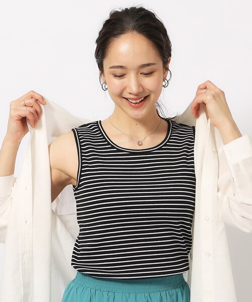 【デザイン】 使いやすいタンクトップにボーダーが仲間入り! すっきり見える細ボーダーがデイリーユースにぴったりです。 開きすぎない衿ぐりと下着が見えにくい脇下のサイズに調整しました! 【スタイリング】 シアー感のあるシャツやトップスに合わせるのがオススメです。 カーディガンのインナーとしても◎ 【素材】 軽やかなコットン混素材を使用しています。 ※照明の関係により、実際よりも色味が違って見える場合があります。また、パソコン・スマートフォンなどの環境により、若干製品と画像のカラーが異なる場合もございます。 モデル情報:身長163cm B81 W59 H88 着用サイズ:02(M) 店舗へのお問い合わせ商品番号:C62-18028 ●製品寸法: 02(M):総丈59cm B77cm 肩幅31cm 03(L):総丈61cm B81cm 肩幅32cm 04(LL):総丈63cm B86cm 肩幅33cm 備考: