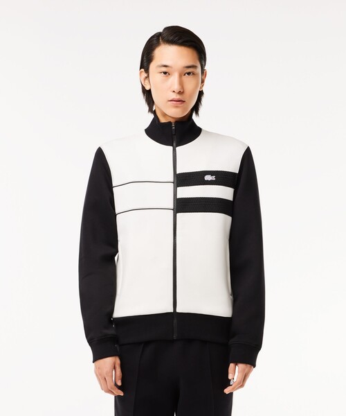ベーシックなトラックジャケットをデコラティブなデザインで ・オーガニックコットン仕立てのスムーススウェット素材 ・ベーシックなトラックジャケットのデザインを踏襲 ・ワニロゴパッチを配した左胸のニットテーピング ・フランスメイドのハイクオリティ Regular Fit