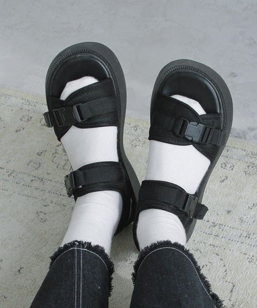 旬のボリューム感のある厚底でスタイルアップが叶うスポーツサンダル。 クッション性のあるベルトで足首をホールドしてくれるので、疲れにくく安定感のある履き心地です。 程よい高さでシンプルなデザインの厚底ソールを使用。 素足での着用はもちろん、ソックスとの相性も良く様々なスタイリングを楽しめます。 カジュアルなコーデにはもちろん、レディライクなアイテムとも◎ どんなスタイリングにも溶け込みやすく、シーンを選ばずに着用いただけます。