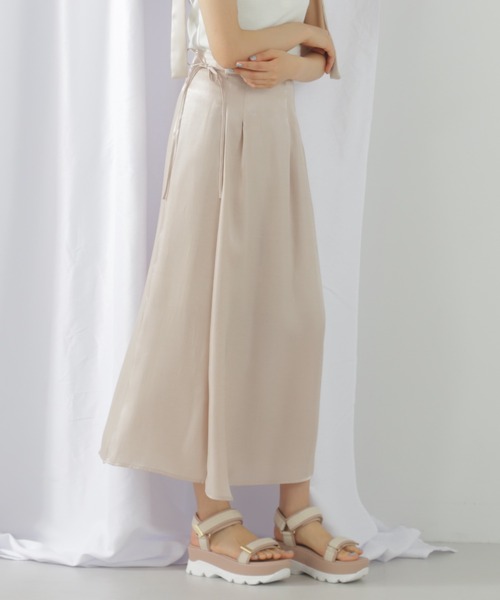 エレガントで上品なシャンブレーサテンを使用したスカート軽く柔らかい風合いが女性らしさを演出し、脇リボンとラップディテールがアクセントになります。後ろウエストはゴム仕様、脇ファスナーで着脱できます。シンプルなブラウスやTシャツと合わせるのがおすすめ。トップス次第でデイリーカジュアルからフォーマルな場面まで幅広く活躍できます。※撮影時照明の関係により、色味が違って見える場合がございます。またパソコン・スマートフォンなどの環境により、若干製品と画像のカラーが異なる場合もございます。予めご了承ください。商品の色味は、商品単品画像をご参照下さい。※商品画像はサンプルのため、色味やサイズ等の仕様に変更がある場合がございますので、予めご了承ください。◆お買い物をよりお楽しみいただくために◆・「商品のお気に入り登録」で完売カラーの再入荷やラスト1点、セール通知を受け取ることができます。・「ブランドのお気に入り登録」で新商品の入荷情報など、いち早く受け取ることができます。