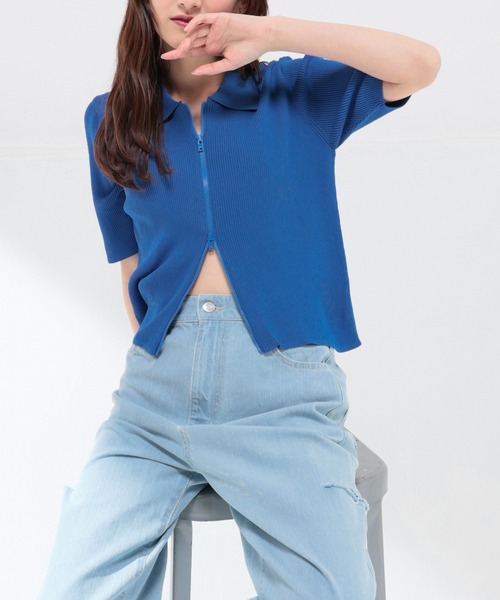 ひんやり快適『ハニさら』カーデ 【デザイン】 上からも下からも開閉可能な、トレンドのWジップ。 コンパクトなサイズ感と、リブの縦目でさりげなくスタイルアップ◎ 【素材・機能】 程よいフィット感のレーヨン混ニット素材。 ひんやり快適な『接触冷感』の機能が付いた『ハニさら』アイテム。 【スタイル】 ゆったりボトムと好相性。 前を開けて羽織りとしても、閉めてプルオーバーとしても活躍。 下だけ開けて肌をチラ見せするのも◎ 品番:636-34-1353