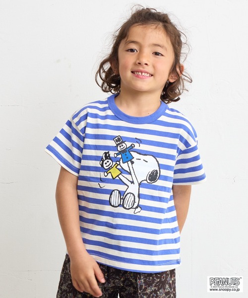 【BIG FIELD】 定番人気!スヌーピーのボーダーTシャツ♪ 綿100%の柔らかい生地感で着心地バツグン。 ベーシックなシルエットで着回しやすさ◎ 存在感のあるスヌーピーをメインに1枚でコーデが完成します! ロゴがプリントされた後ろ姿もカワイイ♪ きょうだいでリンクコーデもオススメです! ■モデル着用アイテム マチつきポケットショートパンツ:0030141005 【プリントについて】ボーダー柄の上にスヌーピーがプリントされている為、 スヌーピーにボーダーが薄く写っているデザインとなっております。