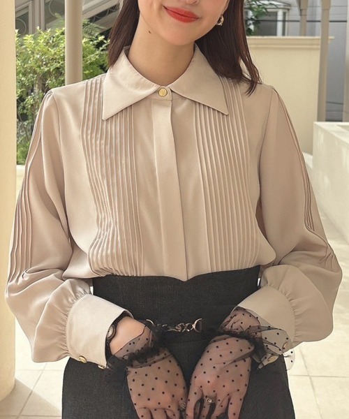 ■デザインポイント フロントにあしらわれた繊細なピンタック使いがクラシカルなシャツ。 しっかりとした素材感でシワになりにくく着心地も◎ 衿の形やキラッとアクセントになった第一釦などシンプルだからこそ細部にまでこだわりました。 ■オススメスタイリング ビスチェセットアップと合わせてモードに着こなすのがイチオシ。 シンプルで着回しやすい一品はスカートやパンツなど幅広いボトムに合わせやすく、デイリー使いだけでなくオフィスシーンにもおすすめです。 ====== 透け感:ややあり 裏地:なし 生地感:ふつう ====== ※アイロンは当て布を使用してください。 ▼商品のお気に入り登録▼ 気になるアイテムの♡をクリックしてお気に入り登録すると残り1点の通知、完売カラーアイテム再入荷の通知、お得な通知が届きます。 ▼ショップお気に入り登録▼ ショップからの新作商品やお得なイベント情報など、いち早くブランドからの情報を受け取ることができます。