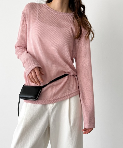 デザイン薄手のリブ素材がシーズンライクな1枚。シンプルなデザインですが、程よい透け感がトレンド感をUPしてくれます。素材リネン混素材で清涼感があり、これからの季節にぴったり!コーディネートキャミソールやタンクトップの上に重ねて、あえてインナーを見せるスタイリングが◎綺麗めにもカジュアルにも合わせやすいアイテムです。El mar(エルマール)El mar はスペイン語で『海』海に向かうときはだれでもワクワクする。洋服を選ぶとき、袖を通すとき、同じように心が踊るアイテムを提案したい。そんな『ワクワク』な気持ちを込めて El mar はデビューしました。-------------------------------------生地の厚さ:厚い〇〇〇●〇薄い伸縮性:縦あり・横あり透け感:あり裏地:なし光沢:なし-------------------------------------こちらの商品は生地に麻素材が含まれております。商品は洗濯や着用中の摩擦、汗、雨等で色移りする事があります。摩擦により下着、バッグ、ソファー等に色移りする場合があるのでご注意ください。吸湿、速乾性に富むこの素材はシワになりやすく、表面上、部分的にムラ、ネップ、飛び込みキズなどが見受けられる場合がございます。また、着用の繰り返しにより多少の毛羽立ちが発生いたしますが天然素材麻の特徴ですのでご了承ください。※取り扱い及びお手入れ方法については、商品について取扱表示、洗濯表示にてご確認下さい。※照明の関係により、実際よりも色味が違って見える場合があります。またパソコン・スマートフォンなどの環境により、若干製品と画像のカラーが異なる場合もございます。※商品の色味は、商品アップ画像をご参照ください。